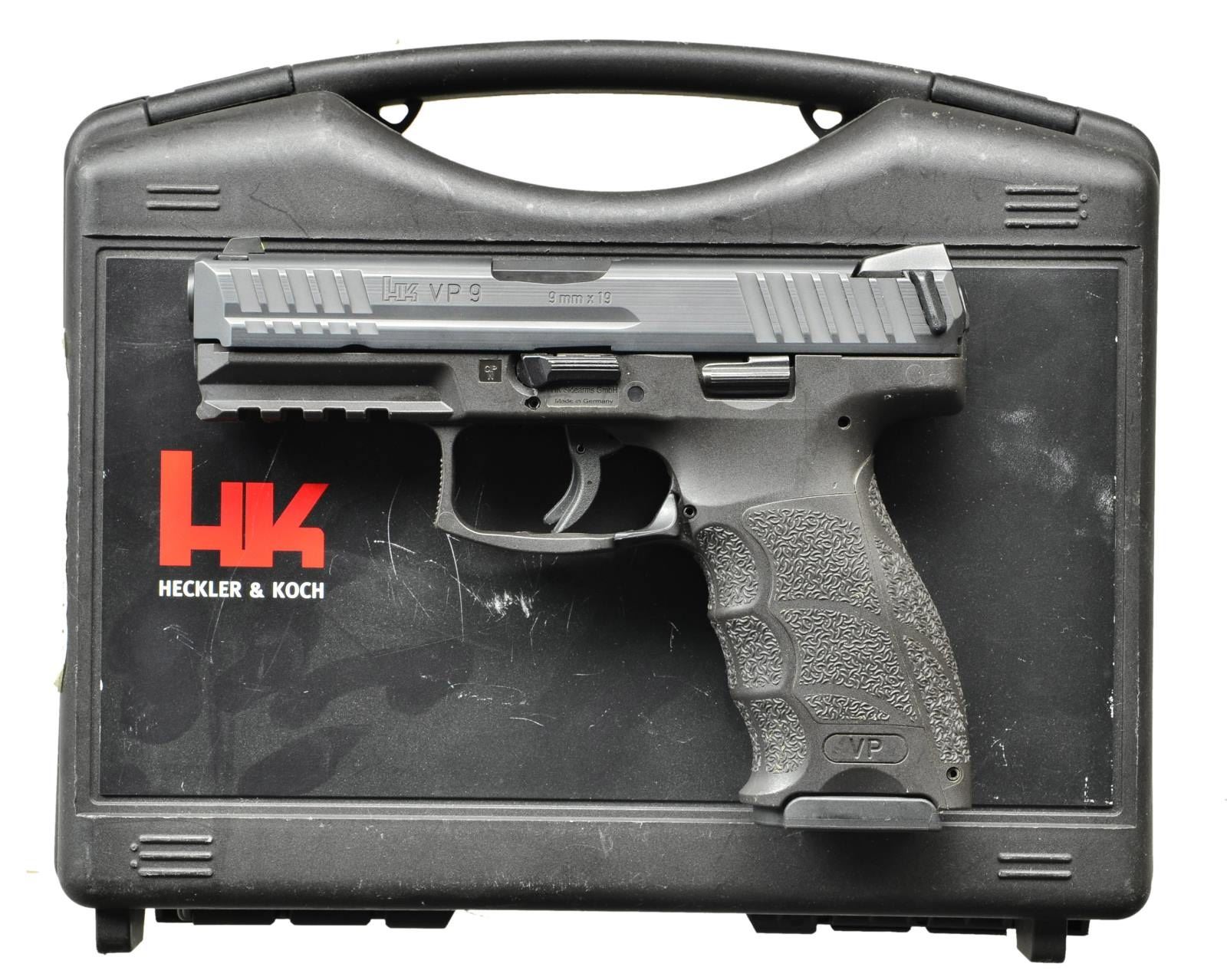 Cal. 9mm Parabellum. S# 224-022538. Bbl. 4". Manufactured in 2014. Polymer frame striker fired pistol. Front & rear serrated slide w/ 3-dot night sights. 2" picatinny rail below barrel for accessory mounting. Matte black finish. Left side controls. Ambidextrous mag release. Front of trigger guard serrated. Interchangeable grip panels. Loaded chamber and cocked striker indicators.MAGS:2 factory 15rd. UNATTACHED ACCESSORIES: Factory, foam lined plastic box, grip panel inserts. CONDITION: All outward aspects indicate little use. Finish coverage is complete & consistent w/ only light thinning in areas of mechanical intervention. Bright bore w/ strong rifling. Fire control mechanism appears to function correctly when cycled by hand. (22-3830/JZ). MODERN. $400-600.