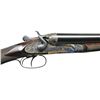 Cal. 12 ga. 2 3/4". S# 14238 (small on watertable). The 29 3/4" chopperlump bbls. with narrow game rib are engraved "Victor" "Sarasqueta" "Eibar" on rear portion. Bbl. flats are stamped with pre-1927 Spanish Nitro proofs. A sling loop is screwed to bottom rib. Case hardened, robust top lever action is fitted with front spring locks having serpentine rebounding hammers. Action is nicely filed and features third fastener, gas vents, side clips, and double triggers (front articulated). Action and locks are engraved with near full coverage English rose and scroll. Maker's name and address is on bottom. Straight grip buttstock of somewhat marbled stump figured European walnut measures 14 1/4". over "Silver" type pad and 1/4" extension. Point pattern checkering is at grip and a sling loop and vacant silver oval are on toeline. Matching splinter forend has Anson release. MEASUREMENTS: BBLS: Bore Diameter: R .738", L .738". Restriction: R .039" (EXTRA FULL), L .040" (EXTRA FULL). Min. Wall Thickness: R .018", L .016". STOCK: DAH: 2 9/16". DAC: 1 5/8". LOP: 14 1/4". CAST: neutral. WEIGHT: 7 lb. 10 oz. CONDITION: fair to good as refinished. Bbls. retaining nearly all of a reblack, engraving compromised. Action retains nearly all of a new case recolor, engraving is considerably softened. Hammers have had spurs reshaped with engraving filed off and are presently blued. Buttstock appears to be considerably thinned and retains most of an oil refinish. Pad is new. Checkering recut. Forend wood also shows considerable wear with refinish and recut checkering. Bores are shiny over a fair scattering of pits with an area of fairly deep pitting in both bbls. about 14" behind muzzles. Action is tight. Locks are good. (22-4514/MGM). CURIO. $1,200-1,800.