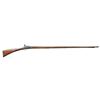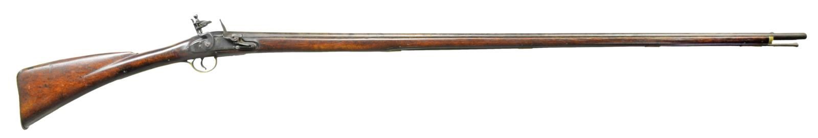 LOCK. Cal. 56. NSN. Bbl. 46 3/4" tapered rnd. w/ brass front sight & filed in sighting groove at rear. Trade flintlock w/ flat plate having teat fitted w/ serpentine cock, integral rnd. pan, bridled friction frizzen & feather spring w/ tear drop finial. Plate marked "KETLAND & Co.". Walnut stock extends to w/ in 4" of muzzle w/ thin brass cap & is pinned to bbl. Butt w/ semi handrail comb has lovely sweep through toeline. Stock is brass mounted. Trigger guard has spear finials & some engraving. Buttplate has fancy steeple tang. Sideplate is in classic "S" shape & there is a vacant brass escutcheon at top of grip. Steel ramrod mounts through 3 beaded pipes w/ matching thimble. CONDITION: very good. Bbl. w/ old oil cleaning shows gray highlights over deep brown patina. Lock is quite dark. Brass once cleaned is toning to mustard brown. Stock has good hand worn areas at grip & fore piece in what appears to be its original oil finish. There are numerous shrinkage cracks which have been repaired along bbl. channel on both sides, otherwise stock is sound. Shiny bore has scattered pitting. Lock will not fully cock. Cock is possible correct replacement. PROVENANCE: From the Collection of James B. Taylor. (01-20507/MGM). ANTIQUE. $1,500-2,000.