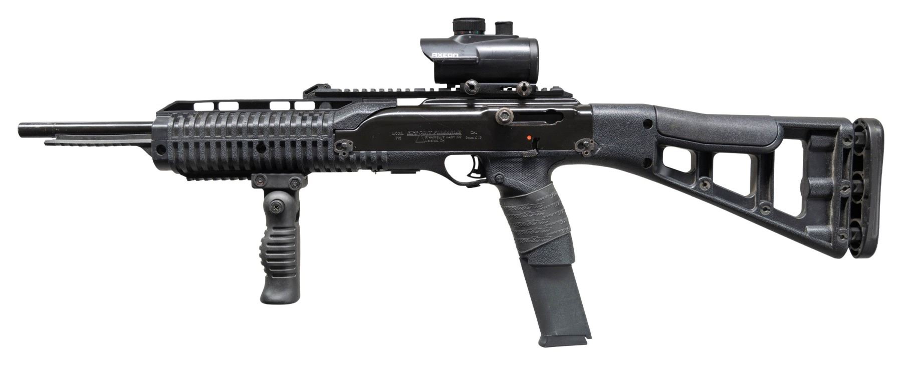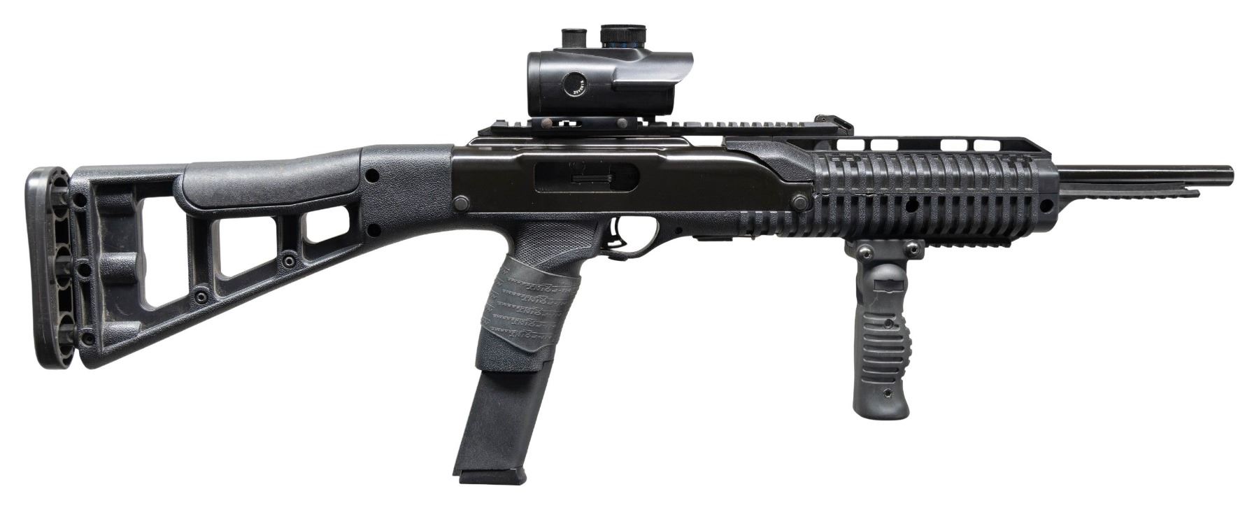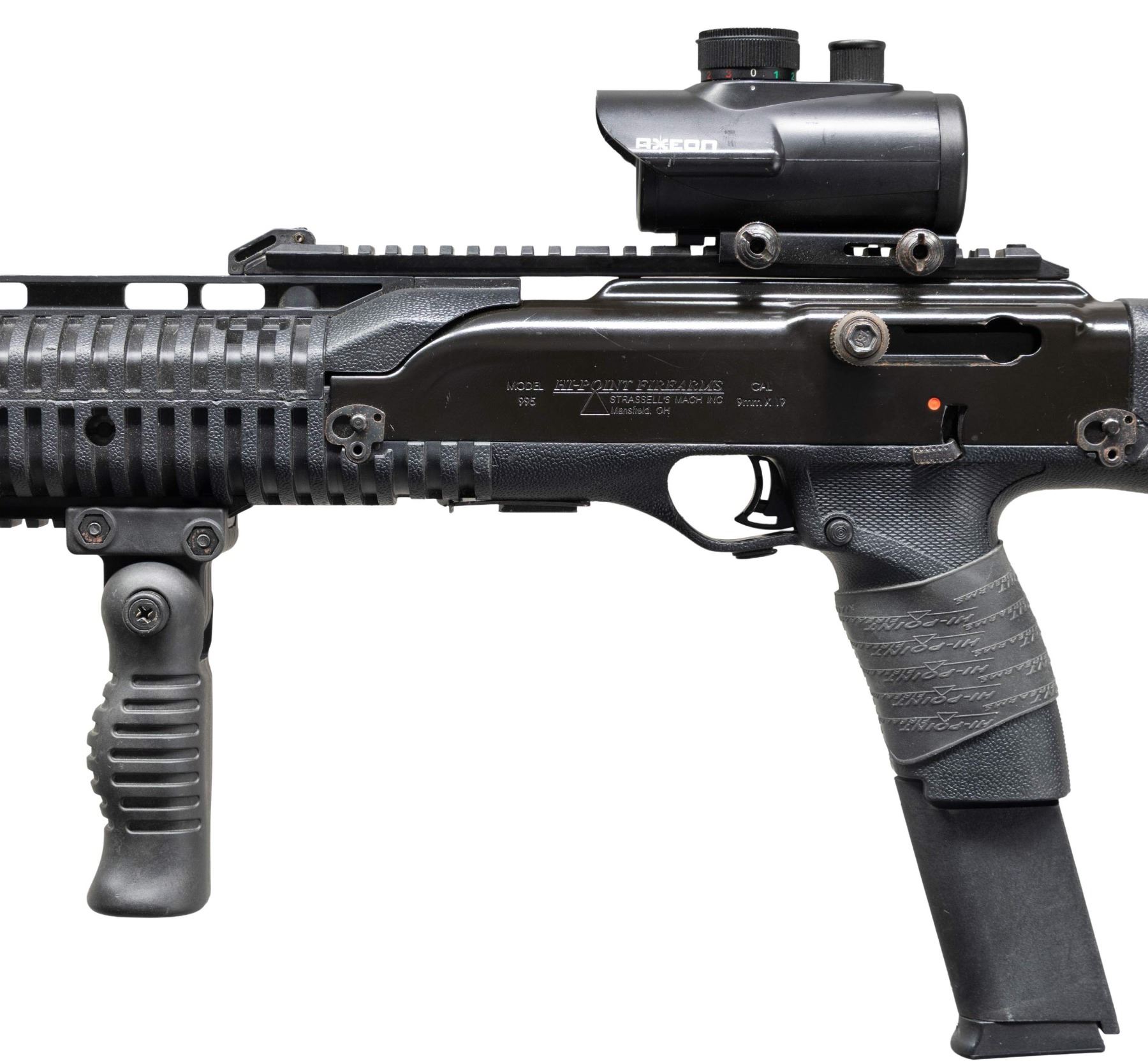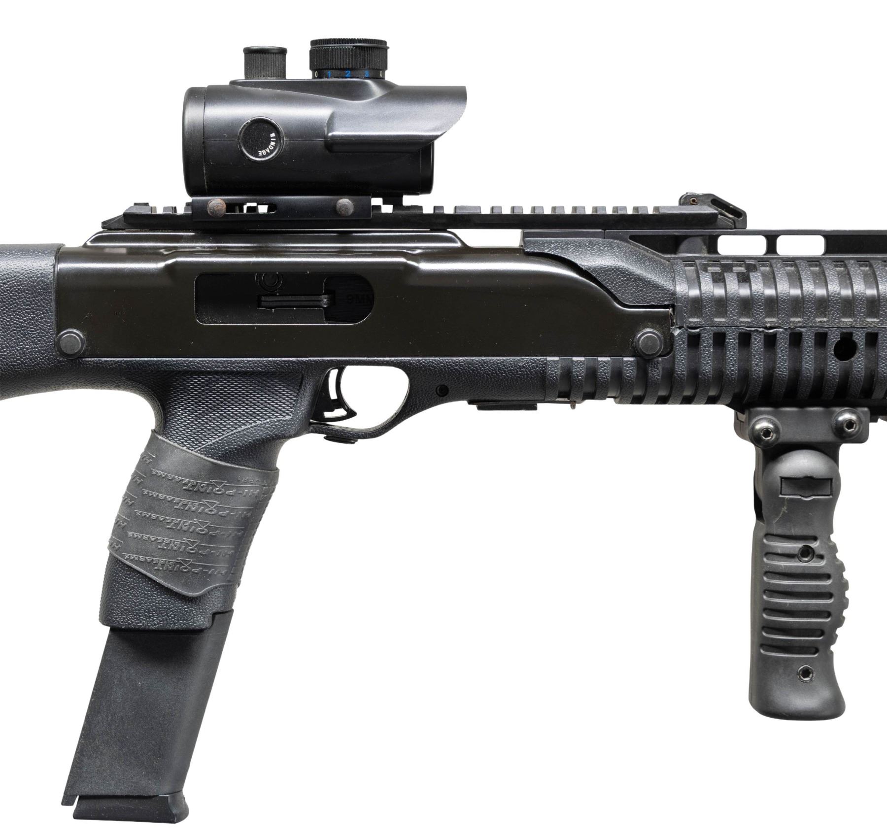 Cal. 9x19. S# F157827. Bbl. 16.5". Axeon red dot sight. Black synthetic stock set w/ folding vertical grip & rubber slip on grip. MAGS: 1 ProMag 15 rd. & 1 Redball 20 rd. CONDITION: very good to near excellent overall showing light handling wear. Very good strong rifling. Optics appear functional. (25-3974/MD). MODERN. $200-300.