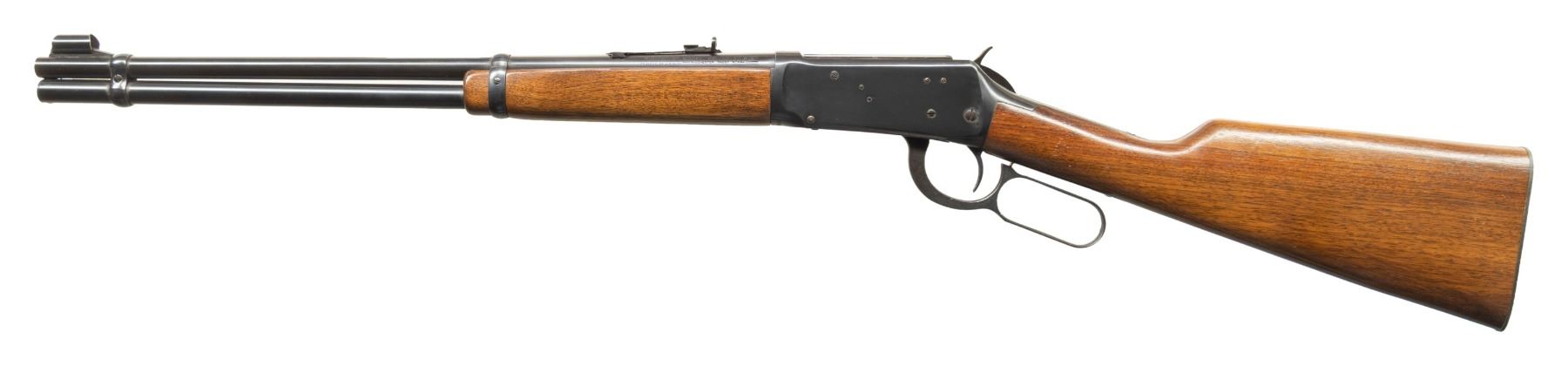 ACTION CARBINE. Cal. 30-30 Win. S# 2581643. Bbl. 20". Model 94 lever action carbine mfg. by Winchester in 1963. Left side of the bbl. is marked with the Winchester trademark logo, followed by the model and cal. designations towards the breech. Metal components exhibit a blue finish overall. Single band fastened plain wood forearm and straight grip buttstock with inverse checkered steel buttplate. Ramped, hooded, and aluminum beaded blade front sight with dovetailed U-notch rear sight. CONDITION: excellent, with metal components retaining the vast majority of their original factory blue finish, exhibiting some scattered spots of light surface oxidation, as well as a few light superficial handling marks overall. Mirror bore, retaining well defined rifling throughout. Proper manual mechanics. Wood furniture shows a few scattered superficial marks and impressions from handling and storage, but otherwise present nicely. An attractive 1963 production Winchester Model 94 carbine. PROVENANCE: Estate Collection of John "Jack" Dhooghe. (25-5553/MLW). CURIO. $600-900.