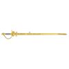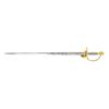MILITIA OFFICER’S SWORD. Overall length: 38 1/2". Blade length: 30”. This exceptionally high-grade Militia Officer’s sword is likely for a General Officer and dates from the Mexican War to the Civil War. The blade has a narrow central fuller running nearly the length of the blade. Blade is etched over 2/3 of its length with various foliate, patriotic & military motifs, including a large spread-wing eagle. Heavily gilded hilt with a downturned guard that bears the Massachusetts state seal surrounded by a wreath of leaves & flourishes. Simple cruciform guard with star embellished ends. The chained guard joins the artistically rendered knight’s head pommel just below the visor. The detail on the pommel is quite exceptional accentuating the scaled armor & decorated helm with feathered crest. Beautiful hexagonal silver grip with deeply cast oak leaves & acorns on both sides. Gilded brass scabbard with various foliate etching and a large spray of arms with liberty cap. The upper engraved feature is the most interesting, being an eagle atop a shield engraved with the Massachusetts “bent arm & sword”. CONDITION: blade shows some original factory polish with scattered staining. Gold finish on the hilt is nearly complete, as is the silver finish on the grip. The scabbard retains 97% of original gilding and the engraving detail is superb. There is a slight bend at the tip of the scabbard, not affecting the blade of the sword. (02-19580/BF). $2,500-3,500.