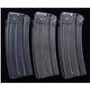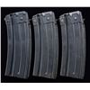 30 ROUND 3-WELD MAGAZINES. Lot consists of 3 30-rd. Pre-Ban Finnish Valmet .223 factory mags. Rugged steel construction with distinctive 3-welds at feed lip reinforcements. CONDITION: very good overall, with mags. retaining the vast majority of their original factory blue finish, exhibiting a few small spots of light wear, and some superficial marks from handling and storage overall. 2 mags. show some light surface oxidation, with 1 exhibiting a small ding on the left side, but otherwise all remain sturdy and serviceable. PROVENANCE: Lifelong Collection of Terrence McCarty. (02-21808-3/MLW). $800-1,200.