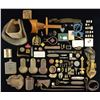 WAR RELICS. This large & varied lot contains both excavated and non-excavated relics & other items associated with the Civil War. Items include 1 pair of eyeglasses in a tin case. / 3 Excavated NCO shoulder scales from Todd’s Tavern. / 1 Excavated eagle cross belt plate that is severely curled. / 1 Brass scissor-type candle snuffer. / 1 Excavated tin shaving mug. / 1 Excavated base section of a Hotchkiss artillery shell from The Peach Orchard. / 1 Excavated bayonet tip. / 1 Excavated Revolutionary War era belt axe head. / 1 Excavated tent rope tightener from Fredericksburg. / 1 Section of lead sabot from Fredericksburg. / 1 Partial lead artillery fuse. / 1 Excavated general service coat button from Gettysburg. / 1 Excavated thimble. / 1 M1851 buckle keeper. / 1 Maple stereopticon. / 1 Excavated picket pen from Bull Run. / 1 Tin powder flask with heavy damage. / 1 Food can. / 1 Tin eyeglass case. / 1 Carved bullet from Fredericksburg. / 1 Excavated confederate tin drum canteen with the words “Railroad Cut” painted on one side. Canteen is substantially crushed. / 1 Brass container full of brass paper fasteners. / 1 White metal 1861 dated token. / 1 Brass primer tube. / 3 Brass strap cinches. / 1 Brass “Q” stencil. / 5 Iron keys. / 1 Women’s Relief Corps medal, no ribbon. / 5 Underwear buttons. / 1 Brass sword spring clip. / 1 Excavated canister shot recovered at Gettysburg. / 1 Button having 3 holes. / 1 Section of canteen stopper chain. / 2 Large cents. / 1 Excavated coin button with no shank. / 1 Number 8 stencil. / 1 Small tin containing musket caps & a musket worm. / 1 Brass butt plate likely for an Enfield rifle. / 1 Piece of wood from the USS Cairo. / 1 Leather sling. / 1 Partial masonic belt & buckle. / 1 Eagle flag pole top. / 1 Brass artillery sighting pendulum. / 4 Gun tools. / 1 Lead artillery fuse. / 1 Partial sword hanger. / 1 Pair of eyeglasses in ill fitting tin case. / 1 Red 2nd corps cloth badge of unknown age. / 1 Cloth 15th corps badge of unknown age. / 1 Brass 15th corps badge of unknown age. / 1 Tinned iron & painted 15th corps badge. / 1 Infantry blue hat cord. / 1 Pair of sunglasses. / 1 Set of militia or masonic sword hangers. / 1 CDV of General Hood with a Brady back mark. / 1 M1851 buckle keeper. / 1 Maltese cross lapel pin. / 1 Light blue cloth 24th corps badge of unknown age. / 1 Pair of reproduction enlisted crossed sabers for a kepi. / 1 Artillery patriotic pin. / 1 Excavated bayonet scabbard tip. / 19 Excavated bullets both dropped & fired. / 1 Unfired Maynard cartridge. / 6 Pieces of Excavated metal. / 1 Excavated full-length bayonet believed to be a post war 45/70 example. / 1 Leather covered wooden stirrup. CONDITION: excavated items show ample patina and oxidation. Non-excavated pieces show light to moderate wear. (02-16863/BF). $800-1,300.