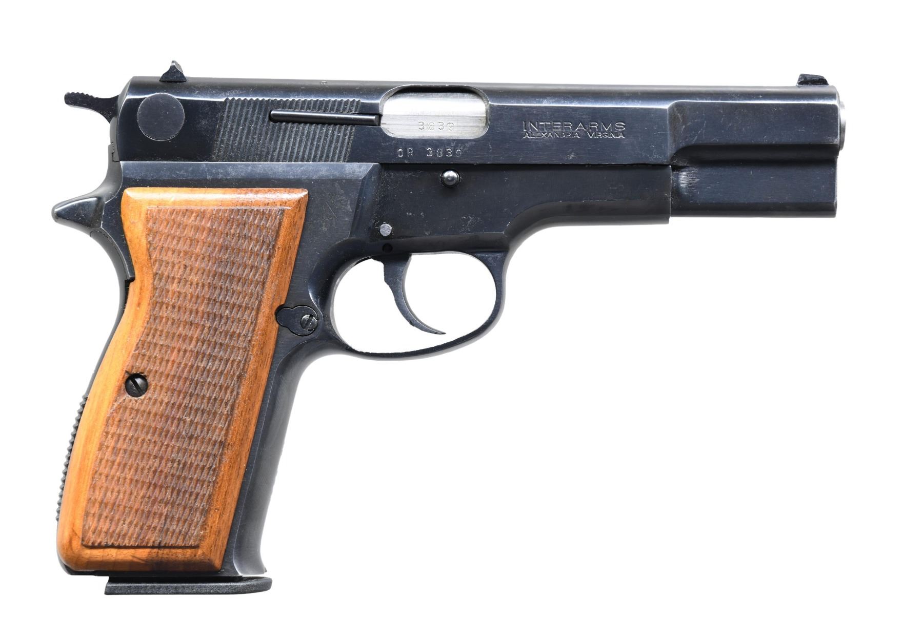Cal. 9x19 (9mm Para). S# OR3839. This pistol was mfg. 1986-1987 as an export version of the P9 pistol (P9R); approx. 5,500 imported by Interarms of Alexandria, VA. Patterned after the Browning Hi-Powder w/ 4.65" bbl. Slide has safety/decocker along with fixed sights. Blued finish. Two piece checkered wood grips. MAGS: 2 - 10 rd. CONDITION: very good to near excellent blue with spots of finish loss. Very good grips. Near excellent bore. Gunsmith attention needed, failure to extract periodically. (25-5156/MD). MODERN. $200-300.
