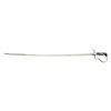Overall length: 41". Blade length: 34 3/4". This Imperial German sword was likely for a Prussian officer of lower rank. The plain blade has a single wide fuller & is stamped at the ricasso, "PAUL SCHULZ DEUTSCH-KRONE". Plated hilt with wire wrapped, black enameled metal grip. Scabbard has a black enameled finish & a single suspension ring. CONDITION: blade retains some original factory polish. Hilt is undamaged. Grip shows wear & wire wrap is displaced & broken near the center. (02-17869/BF). $150-225.