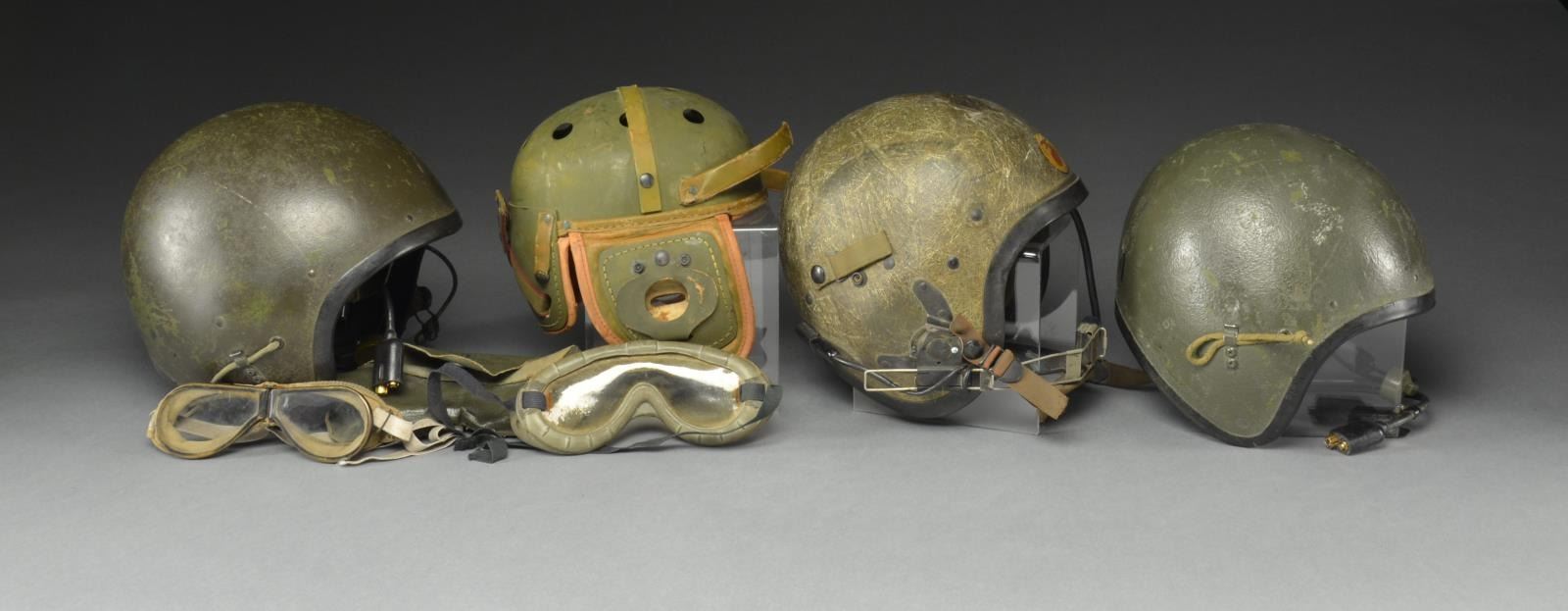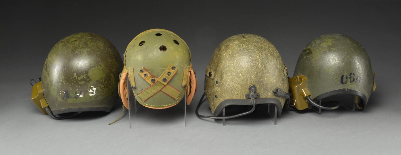 INTERESTING GROUP OF 4 US TANKER HELMETS WWII