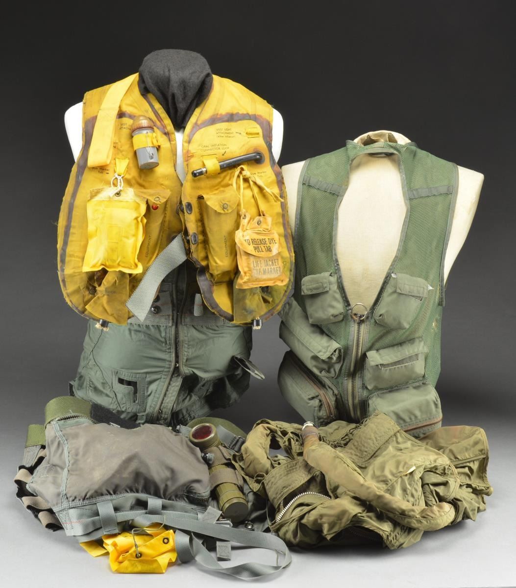 GEAR W/ ORIGINAL ACCESSORIES. This pilot's flight gear was as vitally important as his parachute for his ability to perform his duties & survive combat. Period of use of this equipment would be from late 1940's through the Vietnam War era & into the 1980's. Includes: