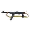 Cal. 7.62x25. S# A3513P. Bbl. 9.8". An interesting facsimile of the Polish PPSH43 SMG mfg. as a US market legal pistol. Chambered in the powerful 7.62x25mm Tokarev rd., which has long been a desirable alternative to other more common pistol calibers such as 9mm Parabellum. At first glance it looks very similar to its namesake, but upon closer examination it is a blow back operated, closed bolt, semi-auto pistol. The portion that appears to be the SMG stock is present for aesthetics only & is non-functional in its current configuration. Front sight is an elevation adj. protected post that sits atop the signature bbl. shroud. The rear sight is a 2-position flip style marked at 100m & 200m. All exposed metal surfaces appear to be blued. Dark brown, near black, plastic grips are checkered. Safety is located in front of the trigger guard. Left side factory sling swivels w/ a green canvas & leather sling. MAGS: 4-35 rd. UNATTACHED ACCESSORIES: factory cardboard shipping box, 2-piece cleaning rod that doubles as a sight adj. tool. CONDITION: fit & finish actually seem to be not only on par w/ but maybe superior to the original. The bluing is deep & rich w/ complete coverage. Plastic has well defined checkering & just enough light dings to have character. The stock assembly portion is affixed very tightly & the closed bolt action is quite smooth w/ a decent trigger. Mags. insert easily & are removed in a fluid motion. Bore is shiny w/ good rifling. Fire control mechanism appears to function correctly when cycled by hand. (21-577/JZ). MODERN. $400-600.