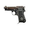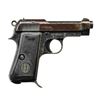 Cal. 9mm Corto (380 ACP). S#627546. Bbl. 3 1/4". Left side of slide has Beretta markings w/ 1937 date. Left rear of frame has Italian army crown over "RE" marking. PB logo grips. Lanyard on left side. MAGS: 1-7 rd. CONDITION: grips show some dirt staining & handling wear. Metal retains 30% original blue w/ scattered oxidation & some patches of light pitting. Very good bore w/ some light oxidation. (22-4663/MJC). CURIO. $200-400.
