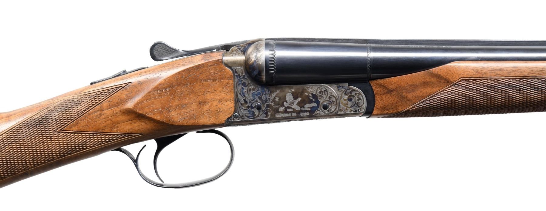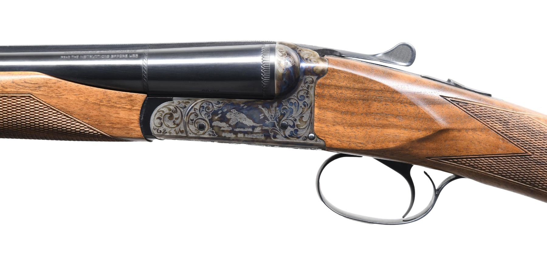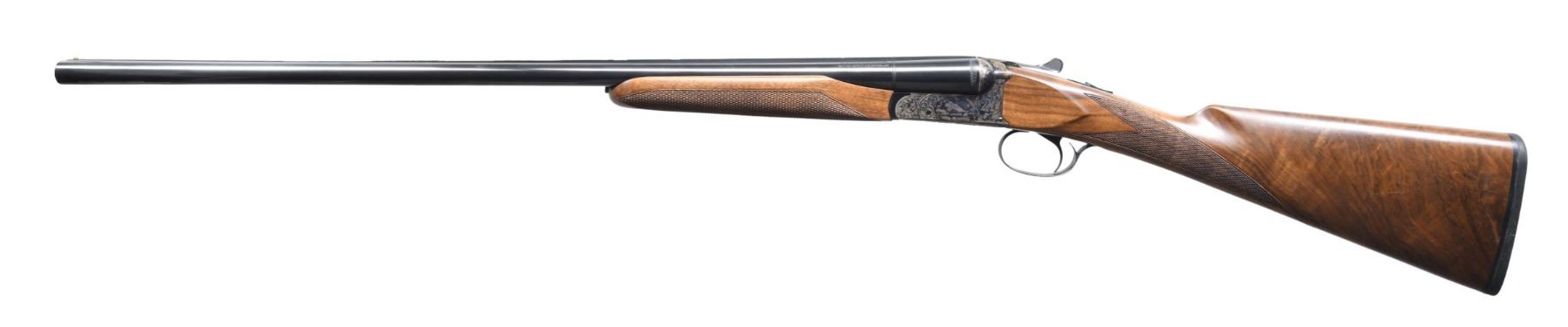 Cal. 20 Ga., 3". S# FVS00074 (CD = 2009). Bbls. 28" with matted rib with brass bead, fitted for interchangeable choke tubes; full set of five included. Mfg. by Fausti Stefano of Brescia, Italy, and imported by Legacy Sports International of Reno, NV, 2009-2011. Laser-engraved boxlock action with SST, ejectors, and auto safety. Checkered, oil-finished walnut stock set with semi-beavertail forearm and straight grip buttstock. LOP: 14.5" to black pad. UNATTACHED ACCESSORIES: matching-labeled shipping box and hard case containing paperwork and choke tubes. CONDITION: near excellent metal and wood finish. Bright, shiny bores. (24-3633/MD). MODERN. $800-1,200.
