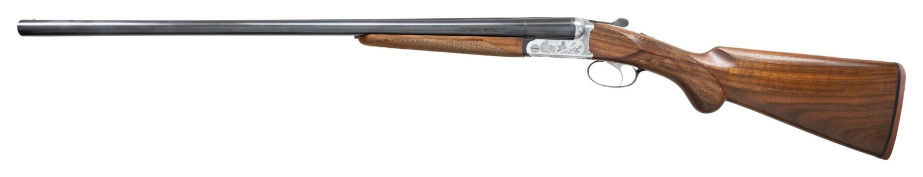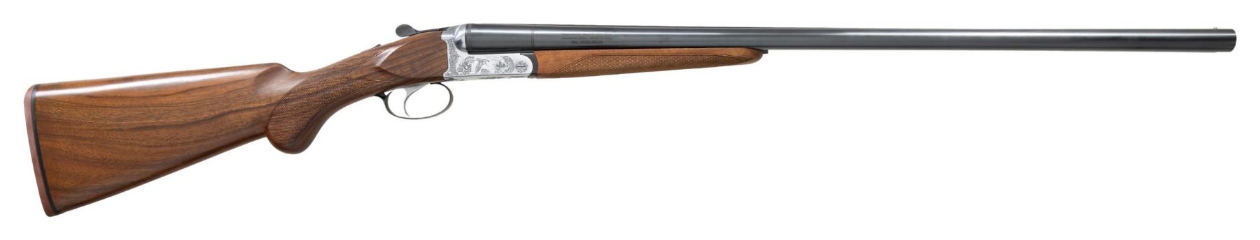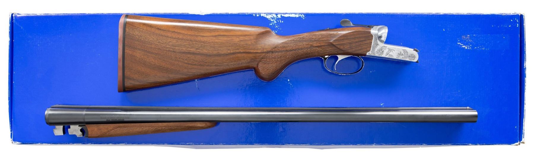 MATCHING FACTORY BOX. Cal. 12 Ga., 2 3/4" & 3". S# P00896F. Mfg. 2009 in Brescia, Italy & imported by Benelli USA. The 28" bbls. have bright bead; IC & Mod. choke tubes. Coin finished boxlock action has light scroll engraving w/ dbl. triggers & extractors. Checkered walnut stock set w/ red pad. UNATTACHED ACCESSORIES: box w/ manual. CONDITION: all aspects appear near excellent with shiny bores. (24-3611/MD). MODERN. $750-1,000.