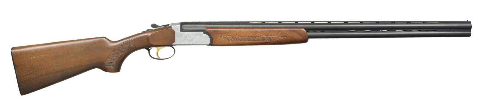 Cal. 20 Ga., 3". S# A2021 (BA = 1991). Imported by Cape Outfitters of Cape Cirardeau MO. Matte finished 28" VR bbls. w/ bead. Mod & Full chokes. Matte finished bbls. Bright finished action w/ stamped acanthus scroll engraving highlighting woodland scenes w/ pheasants on left & mallards on right. Bottom of action has has wetland scene w/ mallards. Boxlock action w/ non selective trigger, extractors & tang safety. Crossbolt needs to be opened manually in order to close action. Walnut stock set w/ buttplate. CONDITION: very good metal & wood finish w/ light handling marks & some spots of peppery oxidation. Very good shiny bores. Action in need of gunsmith attention: bottom bbl. not firing. (23-539/MD). MODERN. $200-300.