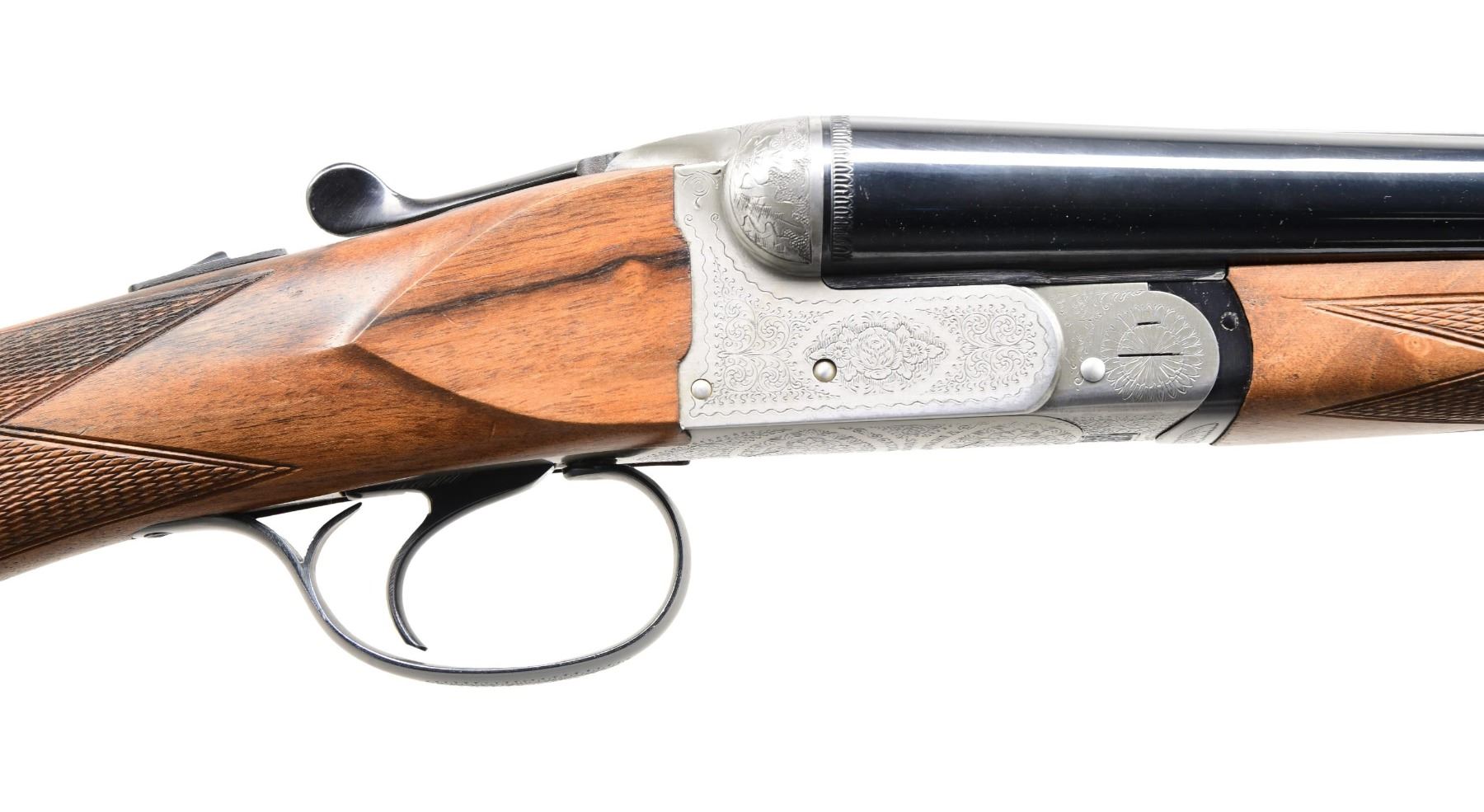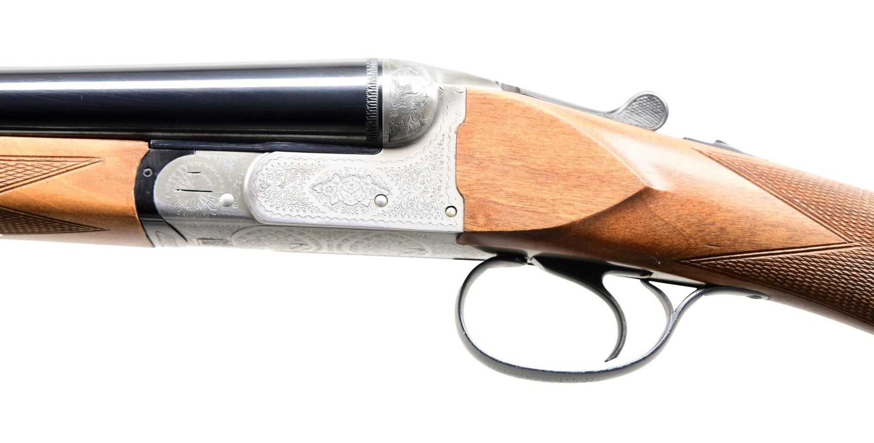 SHOTGUN. Cal. 12 Ga., 2 3/4". S# 209110. Bbls. approx. 27", with brass front bead; chokes appear to be Full & Mod. Italian-proofed "AZ", indicating 1990 mfg.; imported by Magnum Research of Minneapolis, MN. Silver-finished boxlock action with scroll engraving. Single, non-selective trigger, extractors, and top tang safety. Walnut stock set with checkering. LOP: 14 3/8" to Decelerator Pad. CONDITION: near excellent metal and wood finish, showing scattered light handling marks. Shiny bores. (24-2744/MD). MODERN. $500-800.