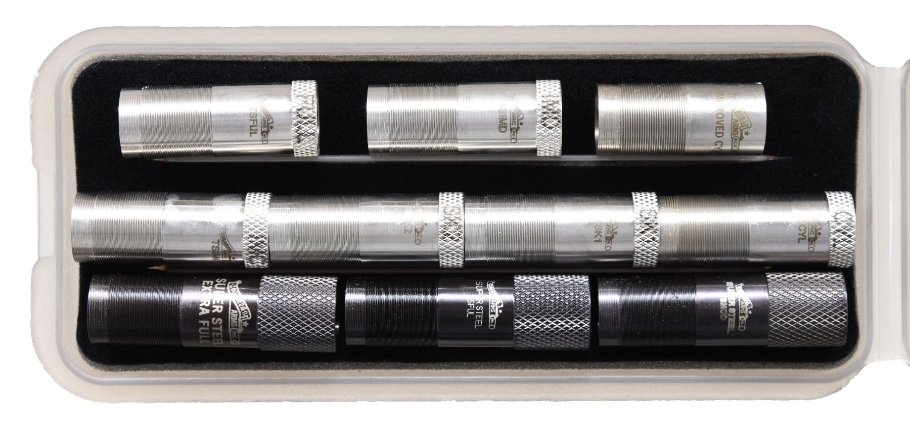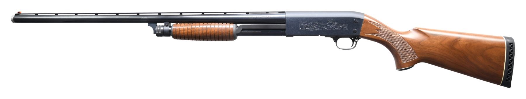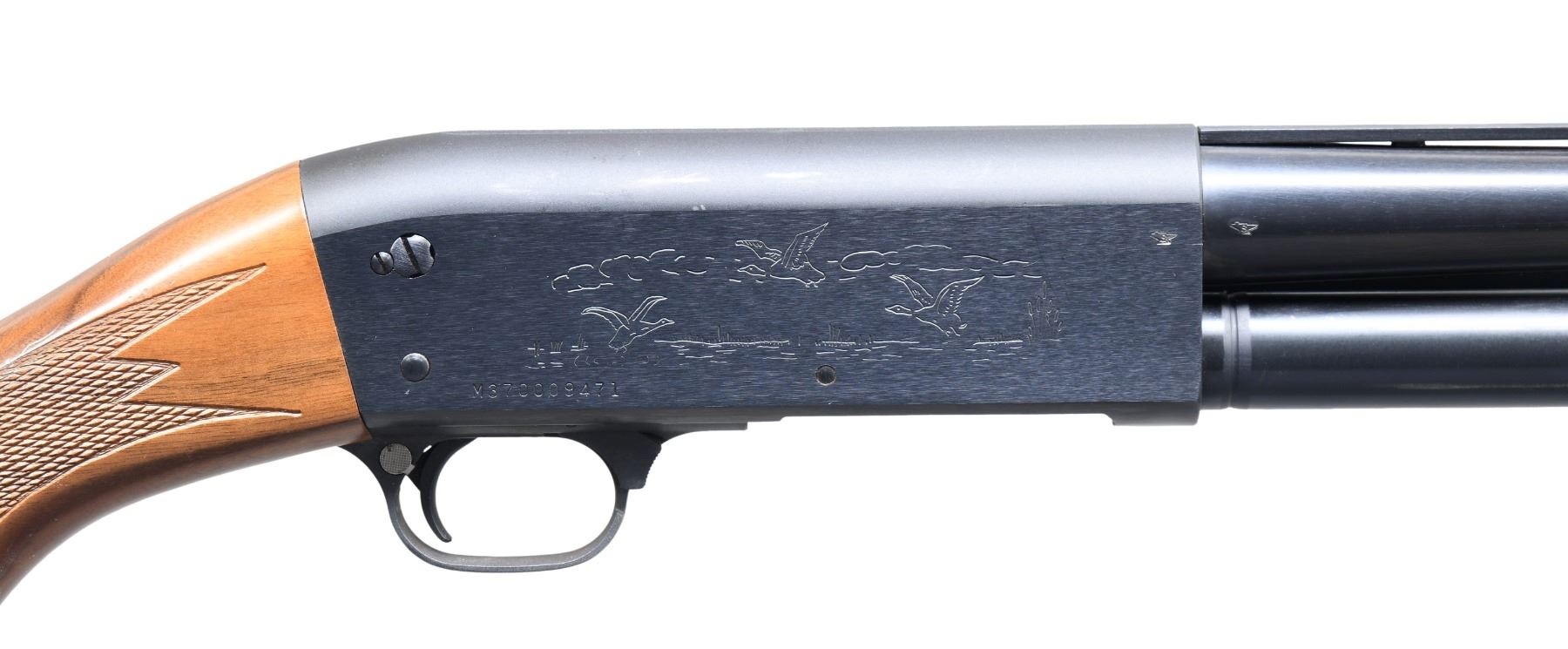 Cal. 16 ga. 2 3/4". S# M370009471. Bbl. 26" w/ factory vent rib & Raybar front sight. Bbl. is fitted w/ aftermarket interchangeable chokes. Action has game scene ornamentation. Small round forend & pistol grip walnut stock w/ cut checkering, grip cap & solid black Ithaca pad. UNATTACHED ACCESSORIES: total of eight stainless steel & three extended blue chokes by Colonial are included. CONDITION: over 97% blue showing small wear spots. Very good wood finish shows a few small marks. Very good bright bore. (24-3391/DS). MODERN. $600-900.
