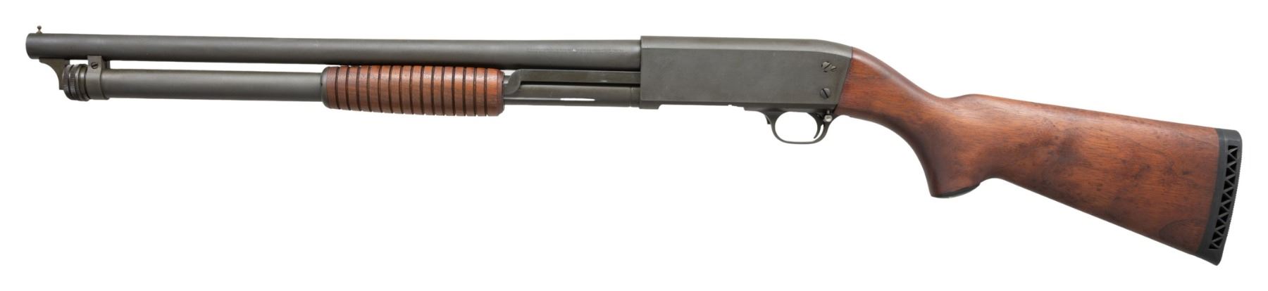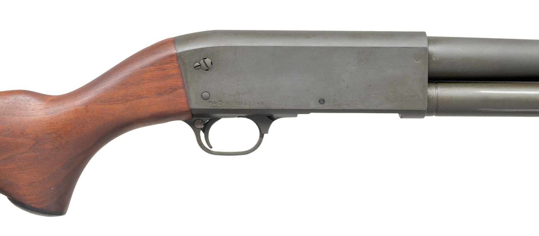 Cal. 12 Ga., 2 3/4" & 3". S# MAG-870017250. Mfg. 1989. Bbl. 20.5" w/ bead & cyl. bore. Parkerized finish. Walnut stock set w/ black Ithacagun pad & Ithaca grip cap. CONDITION: very good overall appearance with cycling wear & light rub marks. Wood shows mildew stains & a couple of dings. Shiny bore. (25-4410/MD). MODERN. $400-600.