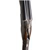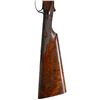 Cal. 28 Ga., 2 7/8". S# 467621. Bbls. 26" w/ fixed Mod. & Full chokes. Ivory front & mid beads. Case colored NID boxlock action w/ rotary bolt & cam cocking. Grade 4 engraving marked "Ithaca Gun Co" over a flying mallard scene on left, right side is marked "Ithaca N.Y." over a rooster pheasant game scene. Scenes are surrounded by floral scroll engraving that continues to top lever, floorplate & trigger guard. Top of receiver has stippled surface. Aftermarket Miller single non selective trigger. Selective automatic ejectors. Beavertail forearm & straight hand stock of exhibition quality black walnut w/ segmented borderless fleur-de-lis hand checkering. Forearm has ebony tip insert. LOP: 14" to checkered butt. DAC: 1 3/8". DAH: 2 9/16". Stock has a near neutral cast. WEIGHT: 6 lbs., 7.5 oz. This gun is only 2,378 numbers below the last Ithaca double mfg. 1948, S# 469999. CONDITION: bbl. retains over 98% rust blued refinish w/ remaining scratches at breech area of right bbl. Action has over 90% restored case colors showing light edge wear & fading in carry areas. Wood has lightly worn finish showing sm. handling marks. Butt area of stock has a large open grain check visible on both sides. Rear forearm latch screw does not fit entirely flush. Trigger guard screws show some distortion. Bores are bright. Left bbl. shows evidence of sm. removed dents & faint ring bulge near choke area. (20-544/DS). CURIO. $5,000-7,000.