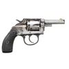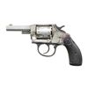 Cal. 38 S&W. S# 9155 (under grips). Oct. 2.5" bbl. Nickel finished 5 shot fluted cyl. Blued trigger guard. Two piece hard rubber grips. CONDITION: Poor peeling & blistering nickel. Fair blue. Good grips with a few sm. cracks. Bore shows strong rifling & pitting. Timing is off as hand periodically doesn't catch cyl. index. (25-2667/MD). CURIO. $30-50.