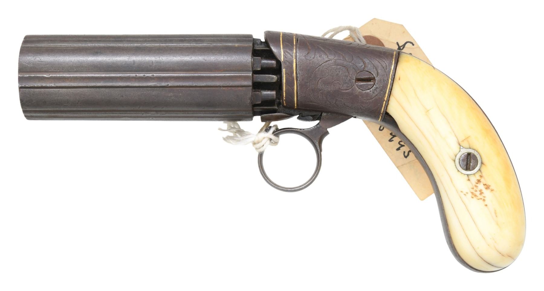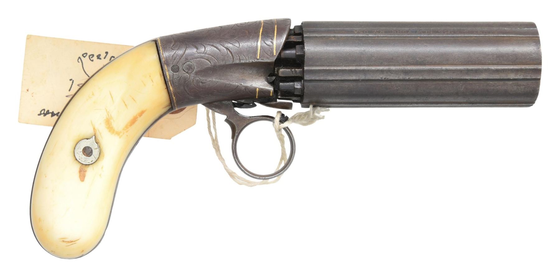 IVORY GRIPPED BLUNT & SIMS SIX BARREL PEPPERBOX