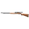 ALL: Cal. 22 LR. NSN. 1) J.C. HIGGINS MODEL 30. Bbl 24". Model 30 semi-automatic rifle mfg. by J.C. Higgins. Left side of bbl. is marked with the model designation and mfg. information, with the right side exhibiting the cal. designation. Aluminum anodized receiver with blued steel bbl. and mag. tube. Wood pistol grip buttstock with smooth wood forend. Integral retractable sling on underside of butt. Receiver is mounted with a J.C. Higgins 4x scope. CONDITION: metal components retain the majority of their original factory finishes, exhibiting scattered spots of mild surface oxidation overall. Mirror bore, exhibiting strong rifling throughout. Wood furniture exhibits scattered marks from handling and storage, but otherwise remains sturdy and serviceable. Exterior of scope exhibits scattered spots of surface oxidation. Optic is hazy. (23-4829/MLW). 2) WINCHESTER MODEL 77. Bbl. 22". Model 77 semi-automatic rifle mfg. by Winchester. Left side of bbl. is marked with the model designation, followed by the Winchester trademark logo, and cal. designation. Blued finish with 1 piece smooth wood pistol grip buttstock. Receiver is mounted with a Weaver V22-A scope. CONDITION: metal components retain the majority of their original factory blue finish, exhibiting areas of light surface oxidation overall. Mirror bore with strong rifling throughout. Stock exhibits some scattered marks form handling and storage, but otherwise remains sturdy and serviceable. Scope optic is hazy. (23-4833/MLW). ALL CURIO. $250-375.
