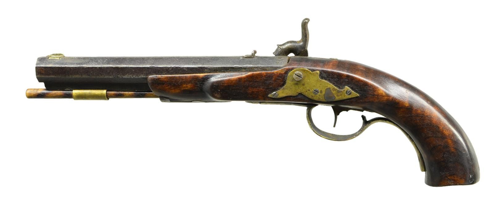 J.P. GUYER, MUNCY PA ASSEMBLED PERCUSSION PISTOL.