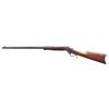 Cal. 32-40. S# 10281. Half oct., half rnd. barrel cut down to 25 7/8". German silver blade front sight with sporting rear sight; elevator is missing. Case colored falling block action. Walnut stock set with crescent buttplate. CONDITION: barrels shows dull blue mixing with streaks of brown patina & peppery oxidation throughout. Case colors are visible along with peppery oxidation throughout. Wood has lightly sanded & refinished appearance with marks & mildew stains. Bore shows strong rifling with light pitting around muzzle. (25-881/MD). CURIO. $400-600.