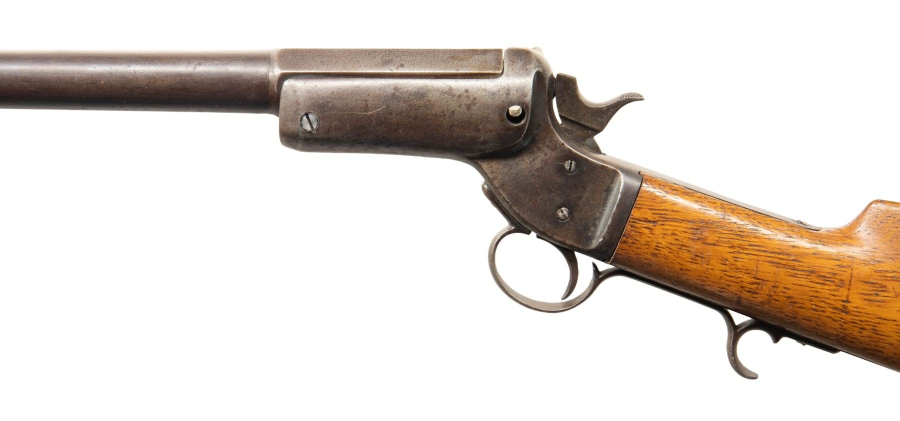 Poor: No original finish, possibly some major parts replaced, loose but functional mechanics, active or heavy external rust, poor bore with heavy pitting and little or no rifling visible.