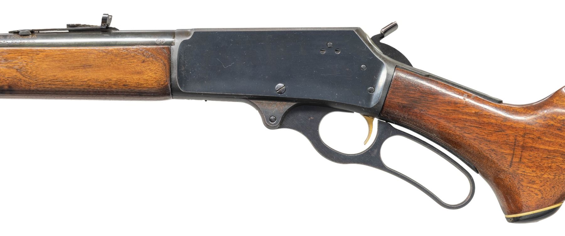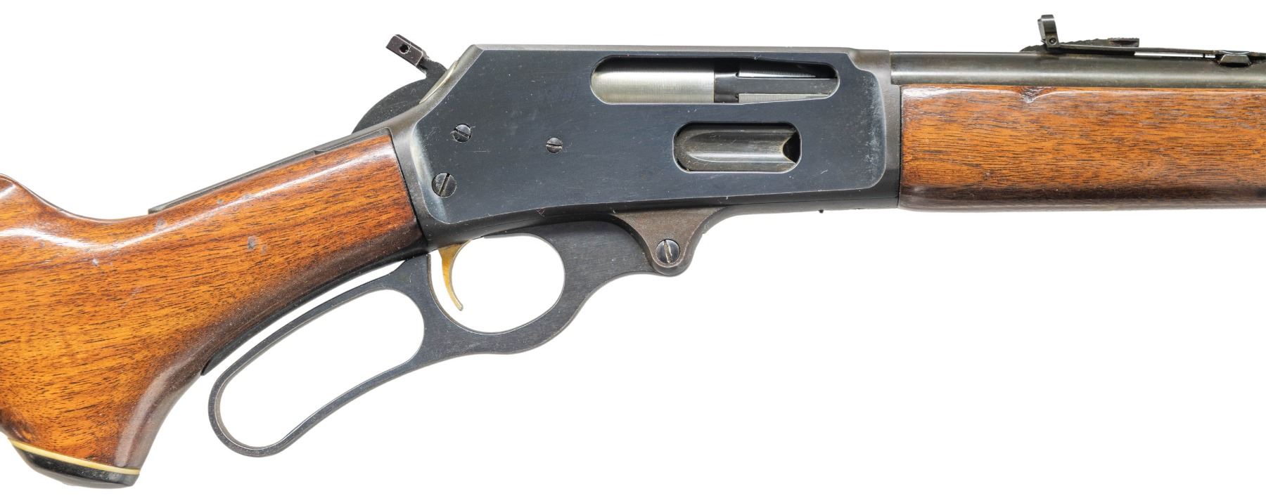 Cal. 30-30 Win. S# 22063877. Mfg. 1978. Pre-crossbolt safety configuration including 20" bbl., hammer extension & walnut stocks. Added sling studs. CONDITION: Good blue with some brown patina mixed in with handling marks. Sanded & refinished wood shows handling marks & 1 notable gouge. Very good rifling. (25-4830/MD). MODERN. $300-500.