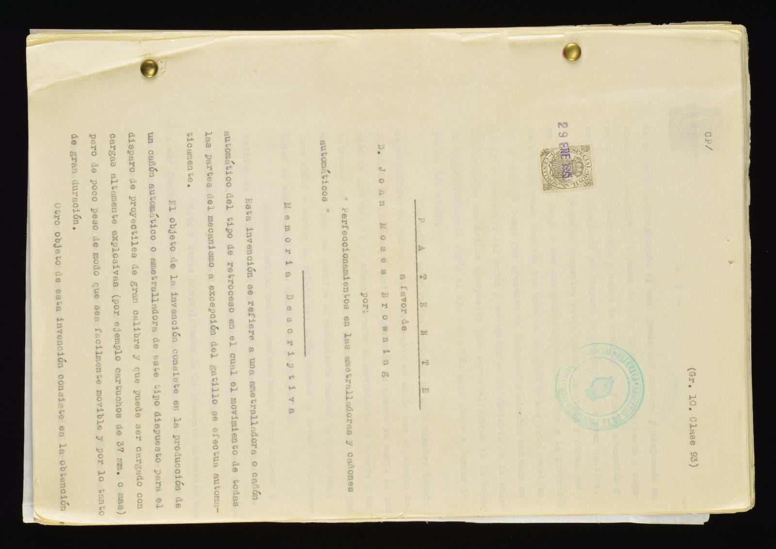 JOHN BROWNING SPANISH PATENT 1925 FOR IMPROVEMENTS
