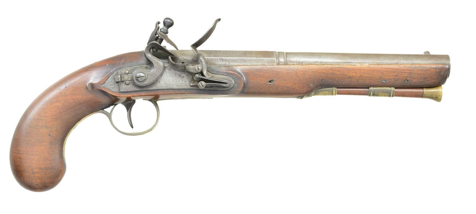 JOHN SHARPE ENGLISH FLINTLOCK PISTOL.