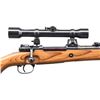 Cal. 8mm Mauser. S# 4615d. Bbl. 23 1/2". Blade front sight. Tangent rear sight graduated to 2000m. Rifle was assembled to resemble a turret style sniper rifle with a Carl Ziess Zievlveier scope. Scope has a post reticle & fair optics. Mounts appear to be later & non-WW2 German. Base rifle is of early JP Sauer mfg. with Weimar eagle firing proof & WW2 German "359" & "37" markings. Extractor is mismatched but other visible numbers are matching with most being renumbered to match in a modern font. Some markings have added white highlight paint. Reblued finish. Laminated stock set that appears to be a repro with left side sling provisions & K98k style sling. Cleaning rod present. CONDITION: stock set shows some light handling wear. Buttplate appears cleaned to bright with some oxidation staining. Balance of metal retains 98% reblue with some light freckling & band removal dings. Action functions properly when hand cycled. Bore has scattered frosting & some light pitting but strong rifling. PROVENANCE: from the collection of Mark Ivey Godfrey. (24-5236/MJC). CURIO. $4,000-6,000.