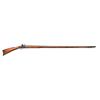 EUROPEAN BARREL & H. DERINGER LOCK. Cal. 65. NSN. This attractive American assembled fowler measures 72 3/4" overall having a 57 1/4" barrel with octagonal rear section, full length rib & with paneled transition from breech section to round in European fashion. Top of rear portion is relief engraved with scroll & has brass inlay. A single leaf U notch Kentucky type rear sight is installed in rear of rib. “H. DERINGER PHILADELPHIA” marked lock is dated “1827” on rounded tail & has reinforced cock inset brass pan, bridled friction frizzen & feather spring with bulbous finial. Full length stock with brass cap & Roman nose comb is made of rock maple with fairly good curly grain. Furniture is brass. Trigger has small spur forming grip. Crescent buttplate has 2” return. Hickory ramrod is held by 2 beaded pipes & matching thimble. CONDITION: good. Original flintlock. Barrel & lock retain an overall dark brown patina over some light pitting. Brass is nicely toned. Stock retains what appears to be most of its original finish with added oil over a fair number of marks & dings. Crack on left side panel through rear lock screw area & some cracks on right side of barrel channel with slivers of missing wood. Dark bore is fairly smooth. Lock is good. (01-21671/MGM). ANTIQUE. $1,000-1,500.