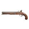 Cal. 58. NSN. Bbl. 9" oct. smoothbore, engraved "London" & stamped w/ crown V & P proofs. Screws have light engraving. Pinned walnut stock. Brass pineapple finial triggerguard w/ rolled edges; other brass furniture includes shield wrist plate, thimble, 2 pipes & ramrod tip. Left ear of stock has stamped "GF". CONDITION: bbl. & lock have brown patina appearance w/ brazed on blade front sight, one large dent on top flat. Intact stock has good varnish w/ numerous light impressions & scratches having a few that pierce finish along w/ a few sm. cracks & chips. Brass has pleasing patina w/ ramrod tip loose. Screws showing light scratches & distortion. Bbl. screw has improper fit to tang & ramrod has improper fit to channel. Lock appears to function when cycled by hand Fair lightly pitted bore. (01-21753/MD). ANTIQUE. $500-800.