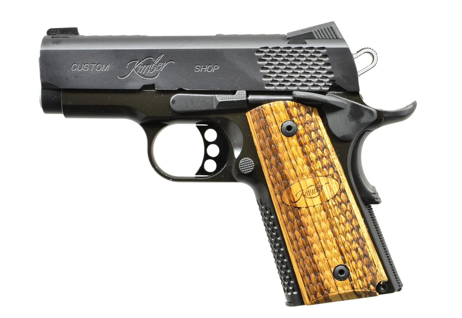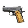Cal. 45acp S# KU118678 Bbl. 3" 1911 style pistol chambered in the popular 45acp. Ramped, match grade bushingless barrel. Bevelled mag-well.Matte black finished flat-top steel slide w/ scale serrations & lightweight aluminum frame. Scale serrations on front strap. Meprolight night sights. Feathered logo zebra wood grips. Checkered mainspring housing. Ambidextrous extended thumb safety. Serrated, skeletonized hammer. MAGS: 1 factory 7rd. UNATTACHED ACCESSORIES: Numbered factory black plastic case & paperwork. CONDITION: All outward aspects indicate as new. (22-2968/JZ). MODERN. $800-1,200