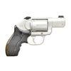 Cal. 357 Mag. S# RV032537. Bbl. 2". Compact, lightweight double action only, stainless steel revolver.3-dot sights. Crimson Trace LaserGrips. UNATTACHED ACCESSORIES: Factory box, lock & paperwork. Brown ETW leather holster. CONDITION: Finish & grips illustrate substantial time spent in holster. Grip finish thinned substantially in areas of physical intervention. Unable to verify laser function. (22-3432/JZ). MODERN. $400-600