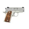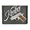 Cal. 380 ACP. S# P0001615. Bbl. 2 3/4". Stainless steel barrel and slide with an aluminum frame. Full length guide rod with decorative scaling on back sides of slide along with front and backstrap serrations. Zebra wood grips with Kimber logo and scale pattern. MAGS: 1-6 rd. factory. UNATTACHED ACCESSORIES: factory cardboard box serial numbered to the pistol includes a factory zippered soft case, manual, lock, safe chamber indicator, oil and paperwork. CONDITION: all aspects near excellent, showing light use only. Bore is near excellent, bright and strong. (22-2944/CW). MODERN. $400-600.