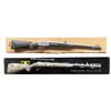 1) KNIGHT REVOLUTION. Cal. 50. S# S007817. Bbl. 28". Fiber optic sights with adjustable rear. Bbl. is factory drilled & tapped for further sight mounting. Stainless finish. Black synthetic pistol grip stock & forend with bottom mounted sling studs & recoil pad. LOP: 13 7/8". Ramrod present. UNATTACHED ACCESSORIES: matching numbered factory box. CONDITION: all aspects near excellent. (01-25511/MJC).
