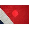 BATTLE FLAG. This battle flag measures approximately 119" x 116", and its basically square measurements identify it as an Army of Northern Virginia battle flag. This size flag would have been flown from a large pole or possibly used as a casket flag. The construction & material used on this flag indicate manufacture in the early to mid-20th century. The flag has a white-bordered blue cross with 13 stars all on a red field. It has a sewn white hoist with a rope halyard. CONDITION: the flag is substantially quite solid with a few small holes from use and a few other holes repaired with red iron-on patches. (02-20123/BF). $400-600.