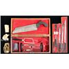 1. Large 2-tier military-style surgical amputation kit by HG Kern, Philadelphia with Civil War address 25th N. 6th Street & Market. Kern contracted with US Army Medical Department to make kits for field use. Tools for amputation include 3 large scalpels, 2 bone saws and bone snipping rongeurs. Also in kit are trephines & Hey’s saw which are tools for cutting skull for relieving pressure on brain. Bullet forceps & bullet probe are also in kit but not fitted. Very good overall, most tools marked "HG Hern".