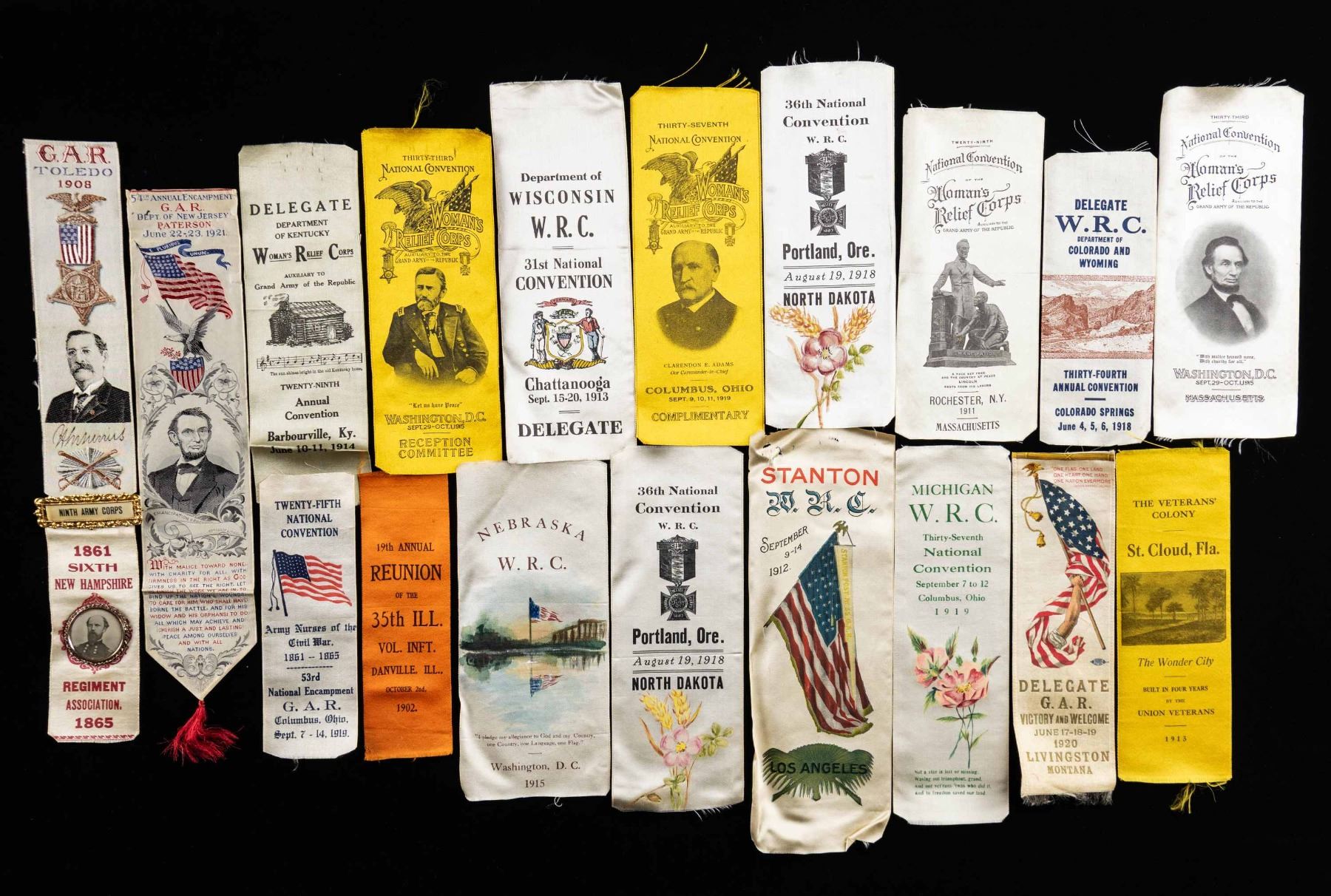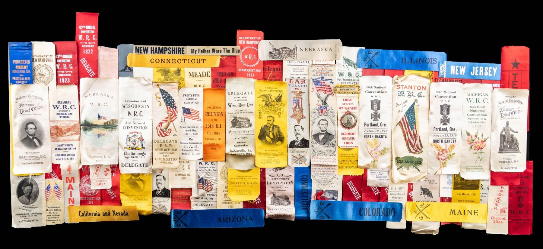LARGE GROUP OF CIVIL WAR REUNION RIBBONS.