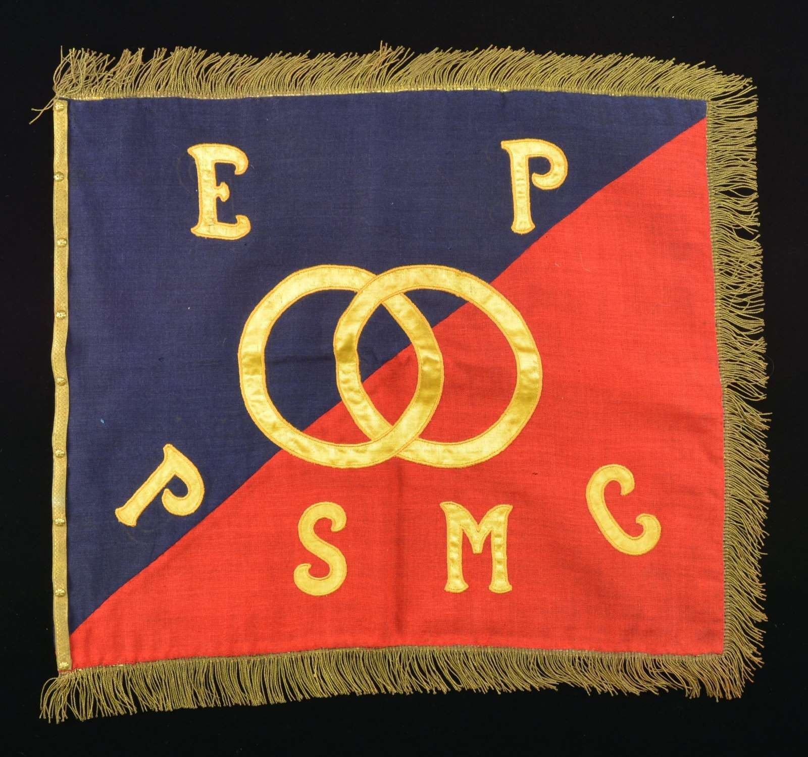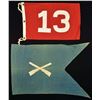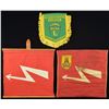 Included in this lot are 4 identical 12x9” British Parachute Regiment camp flags; 12x16 double applique, possibly Rwandan, gold metallic fringe, logo with sword over spears and African and French text; British 2nd Lancers car pennant; 10x6” one sided pennant “6th brigade of Infantry” Usulutan, El Salvador, gold fringe; 9x6” Portuguese language “Infantry” pennant with metal top bar; 17x26” double applique cross rifles on faded blue field; four unknown small flags/pennants & 3 military sashes of which two are East German. CONDITION: good overall, staining and soiling on a few. (02-15747-98/JS). $300-400