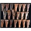 14) M1911 Model of 1916 holster mfg. by Hoyt in 1918. Closure flap is embossed with "US" within an oval, with a partially legible "YT/ 18/ C.Y." on the rear of the hanger. Brown leather construction, with brass fittings.