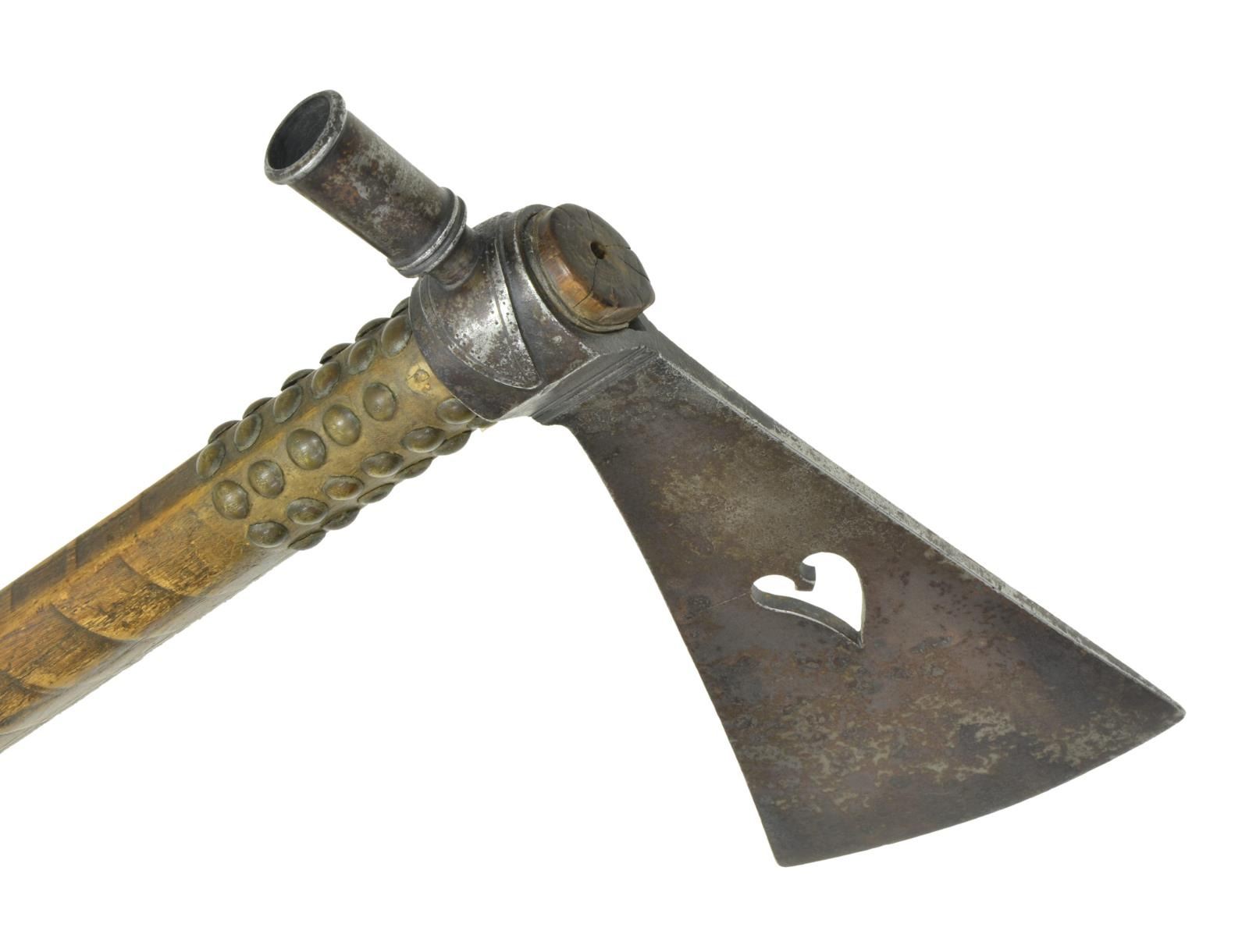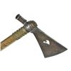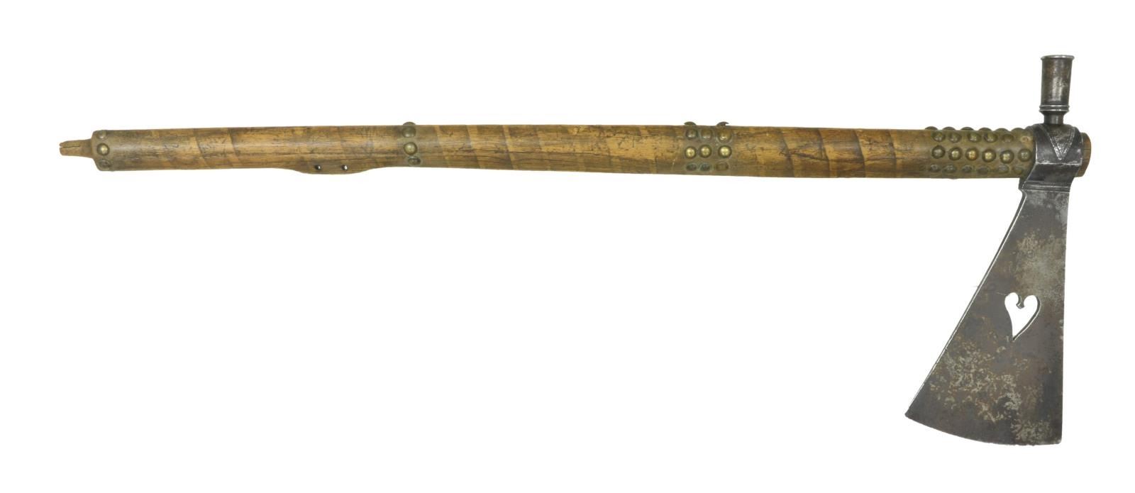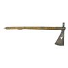 HEART DESIGN. 27.5” file branded tacked haft, leather shimmed 10.5” forged iron head, 4.5” cutting edge. CONDITION: good to very good overall, missing some tacks, mottled iron patina. PROVENANCE: From the Lifelong Collection of Glen E. Mattox. (02-18913/JS). $1,500-2,500.