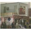 This large metal painted sign was made and used in the famous movie "Empire Falls". This was a 2005 movie for tv (HBO), based on Richard Russo’s 2001 novel "Empire Falls". The original book won the Pulitzer Prize for fiction in 2002. The movie won numerous awards and featured a terrific host of actors including Paul Newman, Ed Harris, Helen Hunt and Philip Seymour Hoffman. Empire Falls was a fictitious Maine community in decline. The film was shot in the town of Skowhegan, Maine (approx. 20 miles north of our auction facility). An additional photo depicts the frontice of the grill with the sign in place during the movie filming. After the movie, the sign was left in place and the grill operated for a number of years. Some time ago the sign was removed. The frontice of the sign is fitted with receptacles for small lights, the sign is a hollow two-sided sign approx. 6" deep. SIZE: 71 1/2" x 70". CONDITION: generally very good, as noted it is painted on metal with the exception of some signs of wear, the sign has nice patina now and generally looks fine. We do not know and will not guarantee that the light sockets on this sign work. A great piece of movie history with a very neat look. (05-1089/JJ). $400-4,000.