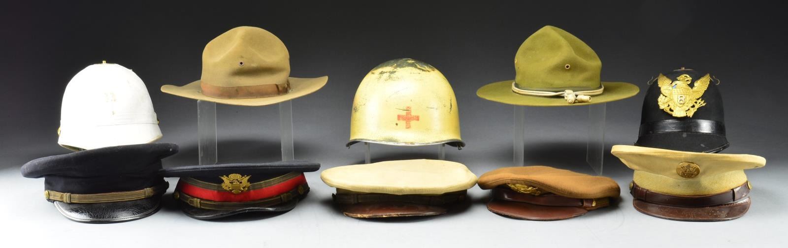 LARGE US MILITARY HAT & HELMET GROUP.