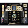 11) MILITARY INSIGNIA. A glass box containing 7 WWI collar disks. / 2 1930s Collar disks. / 1 WWI Engineer officer’s collar disk. / 1 WWII Tank officers collar disk. / 2 Bars for a WWI Victory medal. / 1 Sterling sweetheart wing. / 2 Engineer collar DI’s. CONDITION: items show light wear. (02-15448-9/BF).
