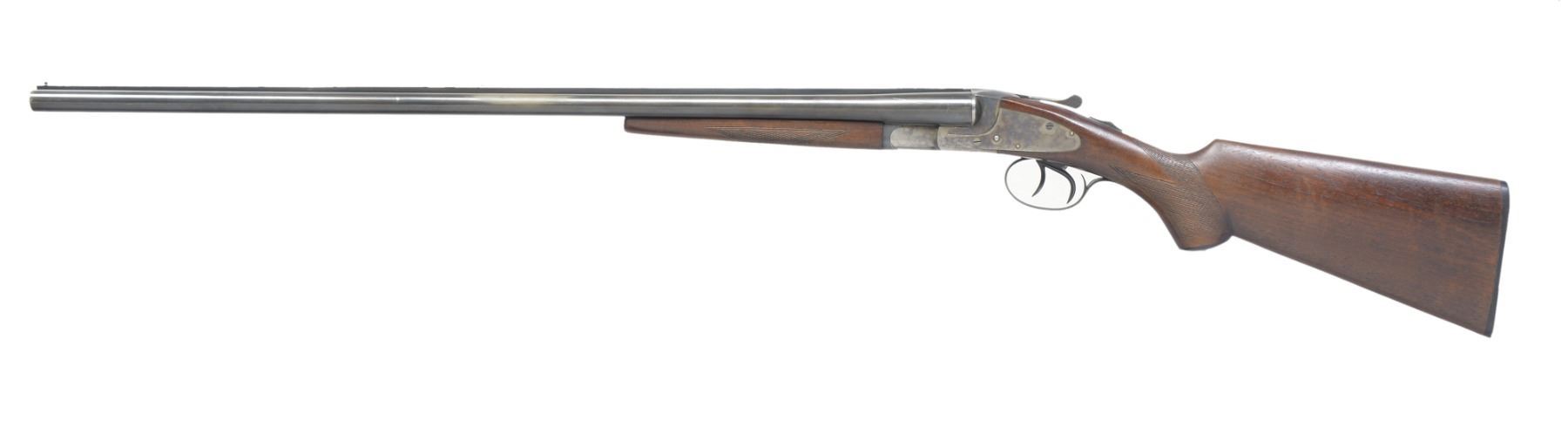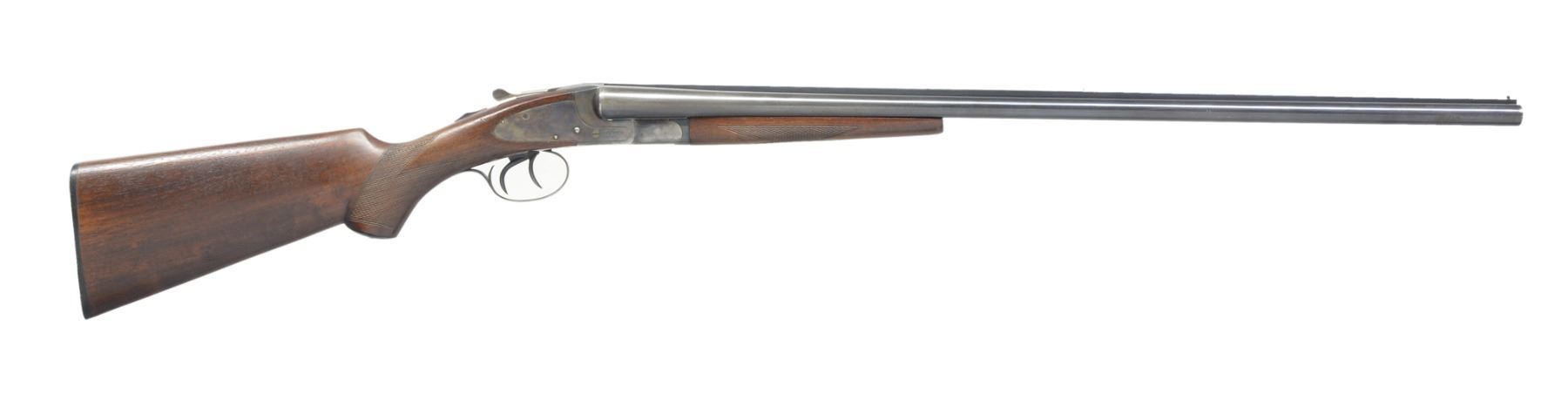 Cal. 20 Ga., 2 3/4". S# FWS48983. Bbls. 28" of Armor steel. Fixed Mod. & Full chokes. Case colored sidelock action w/ dbl. triggers & extractors. Splinter forearm & capped pistol grip checkered walnut stock. LOP: 14 1/8" over original buttplate. S# indicates 1949 production. CONDITION: bbls. retain 80% blue w/ areas of fading. Left bbl. has spot of polishing around raised dent 14" from breech. Action retain 70% lightly faded case colors. Original wood finish shows moderate wear & handling marks. Bores are bright. (19-5545/DS). CURIO. $800-1,200.