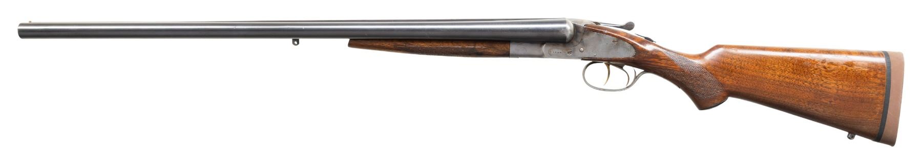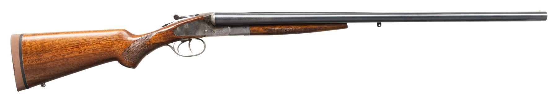 CAl. 12 Ga., 2 3/4". S# FW140396. Armor Steel 26" bbls. have brass bead; chokes measure Mod. & IC. Bottom of barrel & toeline of stock has added sling studs. Sideplated boxlock action w/ dbl. triggers. & Extractors. Walnut stock set; to LOP: 13.5" over Decelerator pad. CONDITION: very good reblued barrels. Cleaned receiver shows faded case colors & prior pitting. Sanded & refinished wood has large cracks & repaired break at toe. Bores shows large areas of pitting. (24-2739/MD). MODERN. $300-500.
