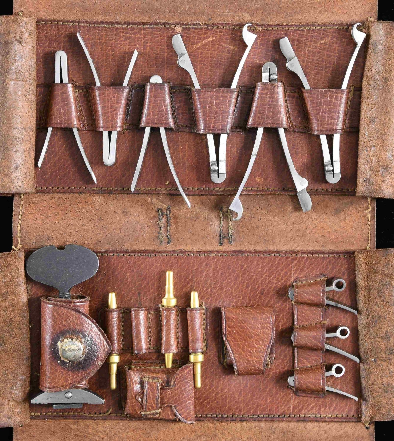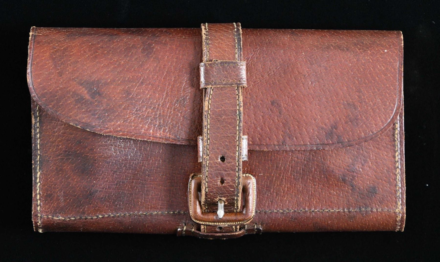 LEATHER POUCH OF SPARE PARTS FOR SIDELOCK GUNS.
