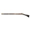 GUN. Cal. 40-44. NSN. Bbl. 37” octagon, one 40 cal. rifled, the other 44 cal. smoothbore. Top flat of the rifled bbl. is script marked “LK”. Both bbls. have blade front sights w/ fixed V notch rear sights. Rifle bbl. has a filled original dovetail w/ sight moved 9 1/2” forward of breech. Iron lock has wheat stalk engraving. Brass side plate is engraved “L. Kaup 1855”. Swivel release is located at front of trigger guard. Swivel section components & top tang are iron. Roman nose stock of curly maple w/ cheek piece. Rectangular lid pierced segmented patchbox. Brass crescent buttplate, finger curl trigger guard & side plate. Bbl. section has full length pin fastened forearm sections. Right side has brass thimble & 2 pipes for hardwood ramrod. Left side has 3 German silver eight point star escutcheons. WEIGHT: 11 lbs, 4 ozs. American Gunsmiths by Frank Sellers lists the following: “KAUP, LEROY, Union Co., Pennsylvania, 1850c. Flintlock Kentucky rifle. (Kauffman)”. CONDITION: bbls. & iron portions have heavy brown patina showing small dents & marks w/ pitting in breech area. Brass has acquired a mottled patina. Stock has worn finish w/ dents having cracks at toe. Both forearm sections have 3” added wood repairs forward of the breech. Lock will not hold in cock position unless trigger is set. Swivel breech is not releasing & swiveling properly. Dark pitted bores. PROVENANCE: from the collection of Dr. John Persing. (01-22306/DS). ANTIQUE. $1,000-1,500.